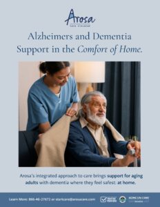 Navigating a dementia diagnosis is never easy—for the individual or their loved ones. At Arosa, we believe that with the right support, individuals living with dementia can continue to experience comfort, dignity, and connection in the place they feel safest: home.